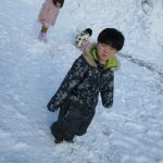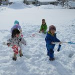 はじめての雪遊びを楽しんでいた子どもたちです
